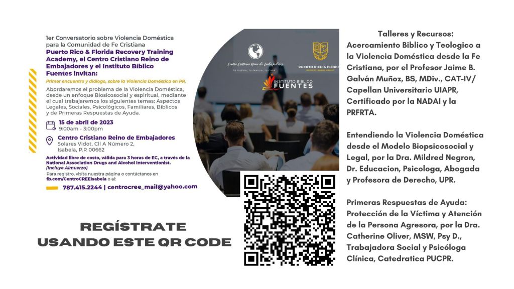Regístrate aquí: https://www.eventbrite.com/e/primer-conversatorio-sobre-violencia-domestica-para-comunidades-de-fe-tickets-595305293157